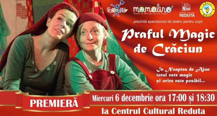 Pe 6 decembie, la Reduta, vor avea loc două reprezentări ale spectacolului „Praful magic de Crăciun”, o producție a MOMOLINO Teatru și Povești pentru copii.
