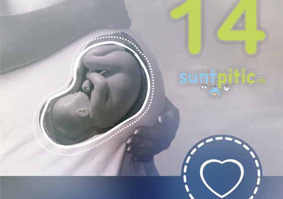 În săptămâna a paisprezecea de sarcină, fătul este în plină expansiune, atinge dimensiunile unei lămâi. Măsoară cam 8.9 centimetri și cântărește 42 de grame. Acum a venit rândul corpului să crească mai repede decât capul, iar gâtul devine mai evident. Acum fătul poate avea nenumărate preocupări: întredeschide ochii, se poate încrunta, își poate suge degetul și închide și deschide pumnii. La nivelul organelor genitale se produc schimbări, astfel în cazul unui băiat se dezvoltă prostata, iar la fete ovarele se deplasează din abdomen în pelvis. În această săptămână se formează și partea superioară a cavității bucale. Pe tot trupul începe să crească un păr foarte fin, numit lanugo. Deși fătul este foarte activ, încă nu puteți să-i simțiți mișcările. Glanda tiroidă începe să secrete hormonii tiroidieni, iar splina – celulele roșii.